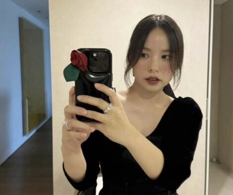 민효린은 자기 모습을 공개했다. 검은 원피스를 입은 단정한 모습, 핑크색 메이크업으로 귀여운 매력을 뽐냈다.
