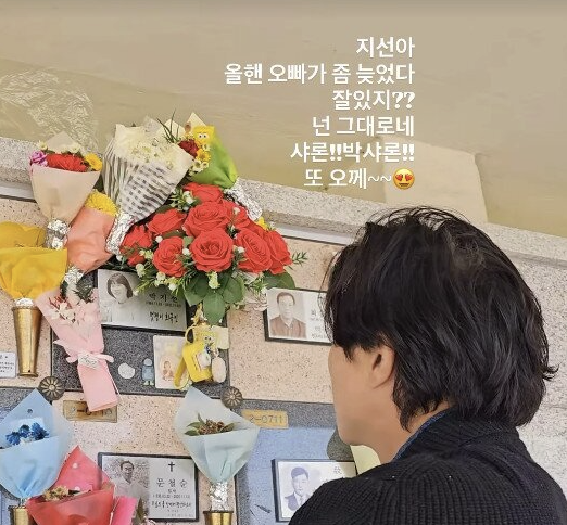 박성광은 5일 자신의 인스타그램 스토리에 박지선의 납골당을 찾은 영상을 게시하며 "지선아, 올해는 오빠가 좀 늦었다, 잘 있지?"라는 글을 남겼다.