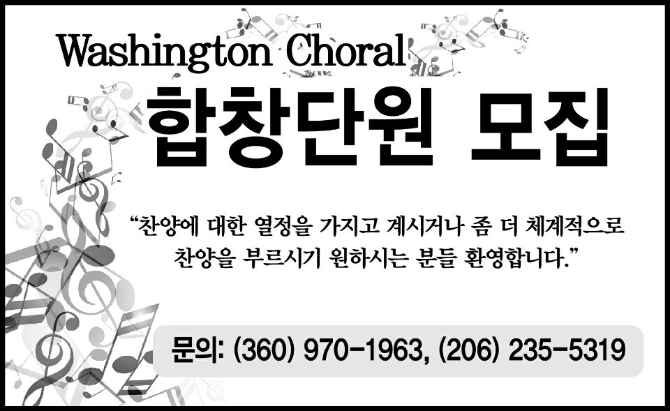 Washington choral 2022시즌 같이 활동하실 합창 단원을 모집 합니다.