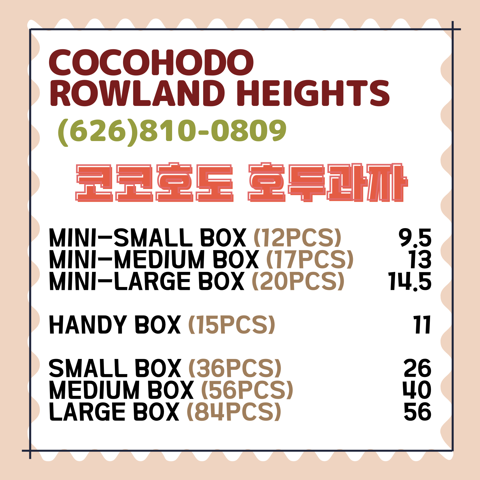 안녕하세요. 캘리포니아 로렌하이츠에 위치한 호두과자 전문점 [ 코코호도 로렌하이츠 ] 입니다.