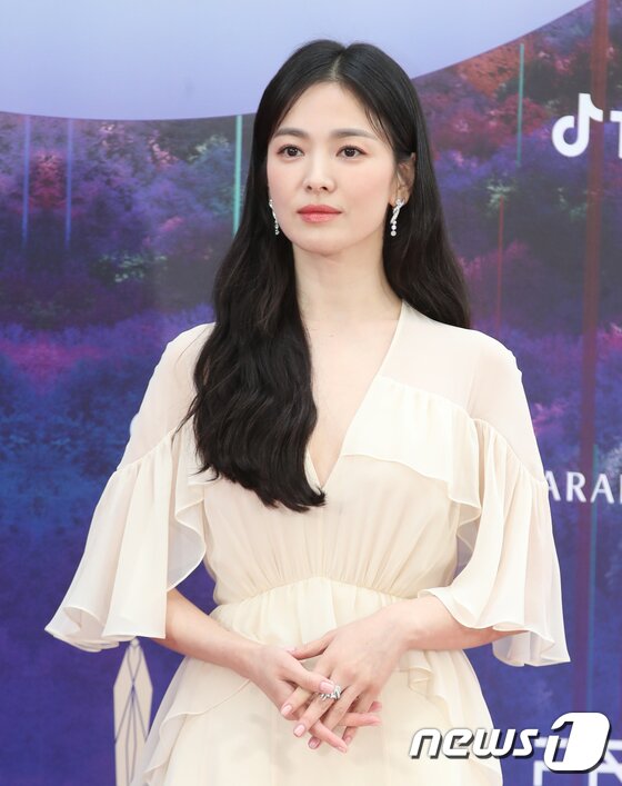 배우 송혜교가 28일 오후 인천 파라다이스시티에서 열린 '제59회 백상예술대상' 레드카펫 행사에서 포즈를 취하고 있다. 2023.4.28/뉴스1 © News1 권현진 기자 |