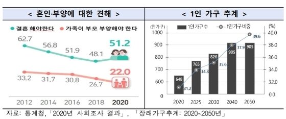 고독사 문제는 1인 가구 증가와 맞닿아 있다. 통계청에 따르면 1인 가구 비율은 2005년까지만 해도 20%에 그쳤지만 2019년 처음 30%를 넘어선 이후 지난해 33.4%로 역대 최고치를 경신했다. 2050년엔 40%에 육박할 것으로 통계청은 전망하고 있다.