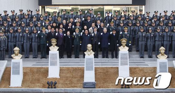 이들 흉상은 지난 2018년 '3·1절' 제99주년을 맞아 우리 군 장병들이 사용한 5.56㎜ 소총 5만발 분량의 탄피 300kg을 녹여서 만든 것이다.