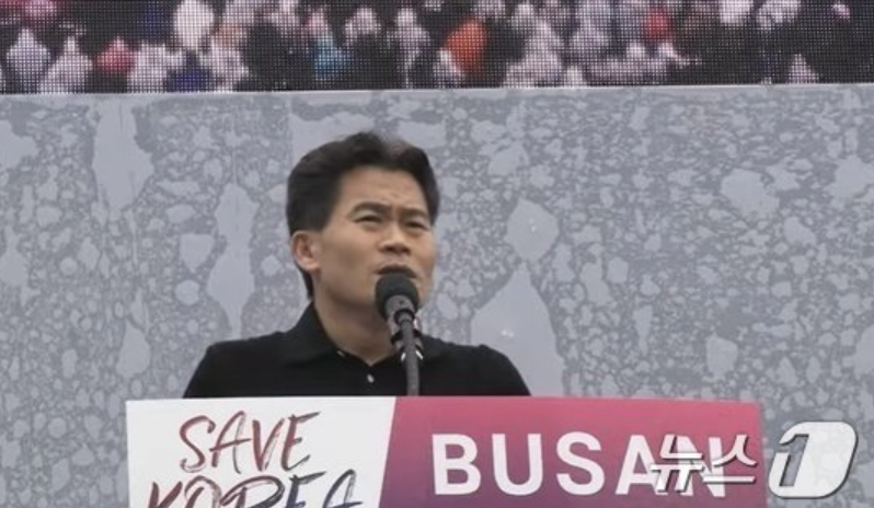 해당 영상엔 전 씨가 지난 1일 부산역 광장에서 열린 집회에 참석, 윤 대통령 탄핵 반대와 관련해 연설하는 모습이 담겼다.