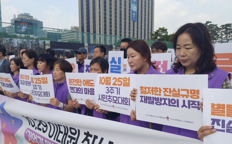 10·29 이태원 참사 유가족협의회와 시민대책회의는 1일 오전 서울 광화문광장에서 기자회견을 열고 "3주기를 한 달여 앞둔 지금 우리는 아직까지도 왜 10·29 이태원 참사가 발생했는지, 무엇이 문제였는지 아직까지 밝혀내지 못했다"고 밝혔다.