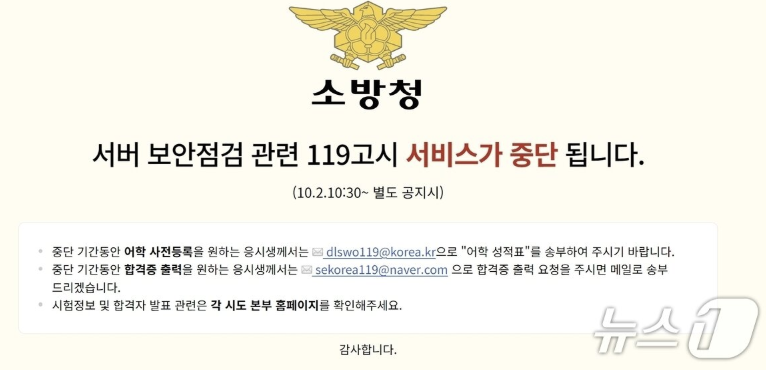 소방공무원 채용 사이트 '119고시' 개인정보 유출…"해킹 추정"