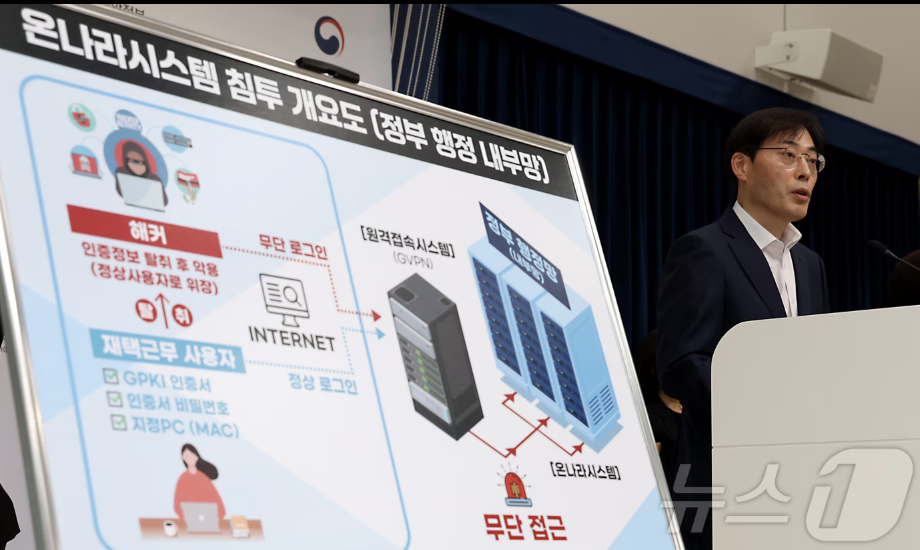 이어 "국가정보원(국정원)이 7월 중순 외부 인터넷 PC를 통해 정부원격근무시스템(G-VPN)을 통해 온나라시스템에 접근한 정황을 파악했고, 행안부도 같은 시점에 통보받아 즉시 조치에 들어갔다"고 밝혔다.