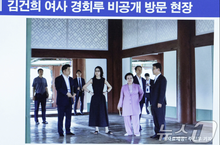 앞서 김건희 씨는 종묘 망묘루에서 지인들과 편법 비공개 차담회를 열고 경복궁 근정전에 들어가 어좌(용상)에 앉는 등 국가유산 사유화 논란에 휩싸인바 있다.