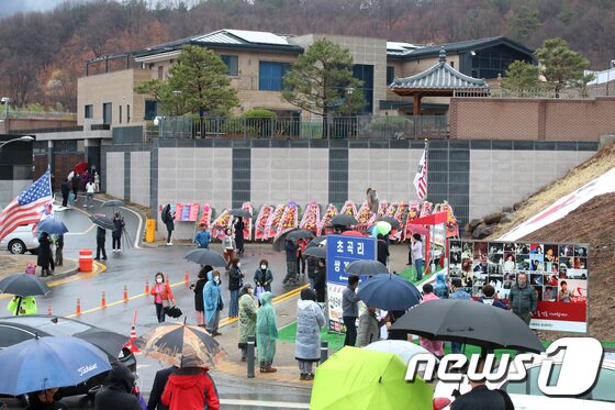 13일 오후 비가 내리는 날씨에도 대구 달성군 유가읍 쌍계리 박근혜 전 대통령 사저 주변이 휴일 구경 인파로 붐비고 있다. 2022.3.13/뉴스1 © News1 공정식 기자 |