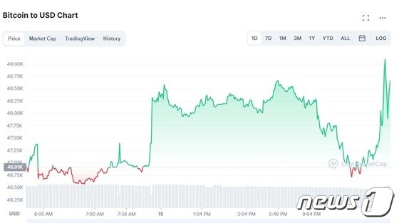 비트코인은 16일 오전 5시30분 현재(한국시간 기준) 글로벌 코인시황 중계사이트인 코인마켓캡에서 24시간 전보다 4.01% 급등한 4만9195달러를 기록하고 있다.