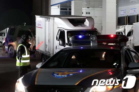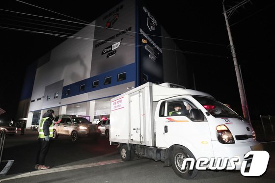 | 신종 코로나바이러스 감염증(코로나19) 국내 백신 접종 시작을 하루 앞둔 25일 오전 경기도 이천시 지트리비앤티 물류센터에서 아스트라제네카 백신이 수송되고 있다. 2021.2.25/뉴스1 © News1 조태형 기자 |
