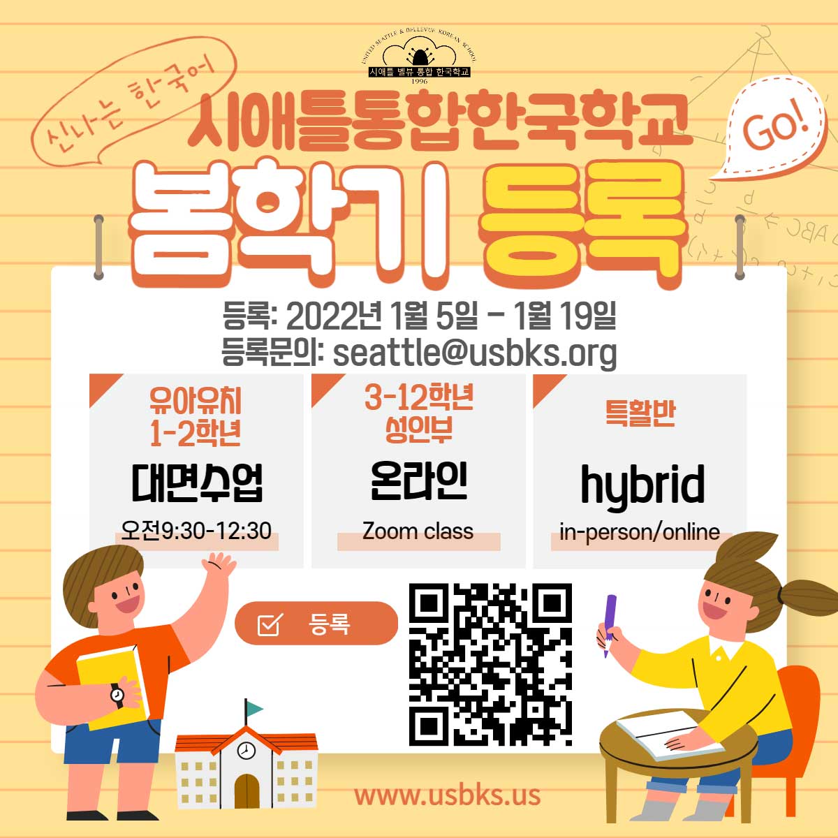 시애틀 통합 한국학교(교장 윤혜성)가 오는 2월 5일부터 시작되는 2학기 등록을 시작한다.