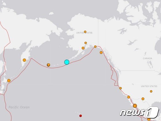 보도에 따르면 해당 지진은 미 알래스카주 남부 앵커리지에서 남서쪽 1345㎞ 떨어진 해역에서 이날 오후 2시17분경 발생했다. 지진 진원 깊이 3㎞라고 밝혔다.