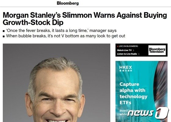월가의 유명 투자은행인 모간스탠리가 최근 급락하고 있는 기술주를 저가 매수하지 말라고 충고했다고 블룸버그통신이 23일(현지시간) 보도했다.