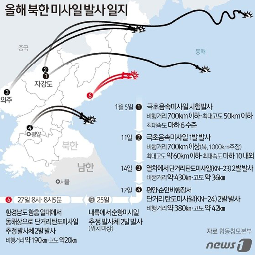 북한이 2022년 새해 들어 벌써 6번째 무력시위를 벌였다.