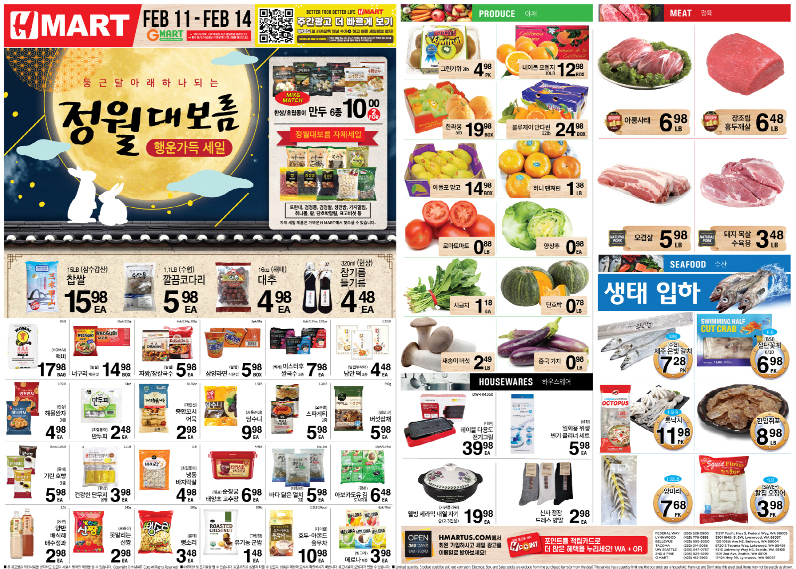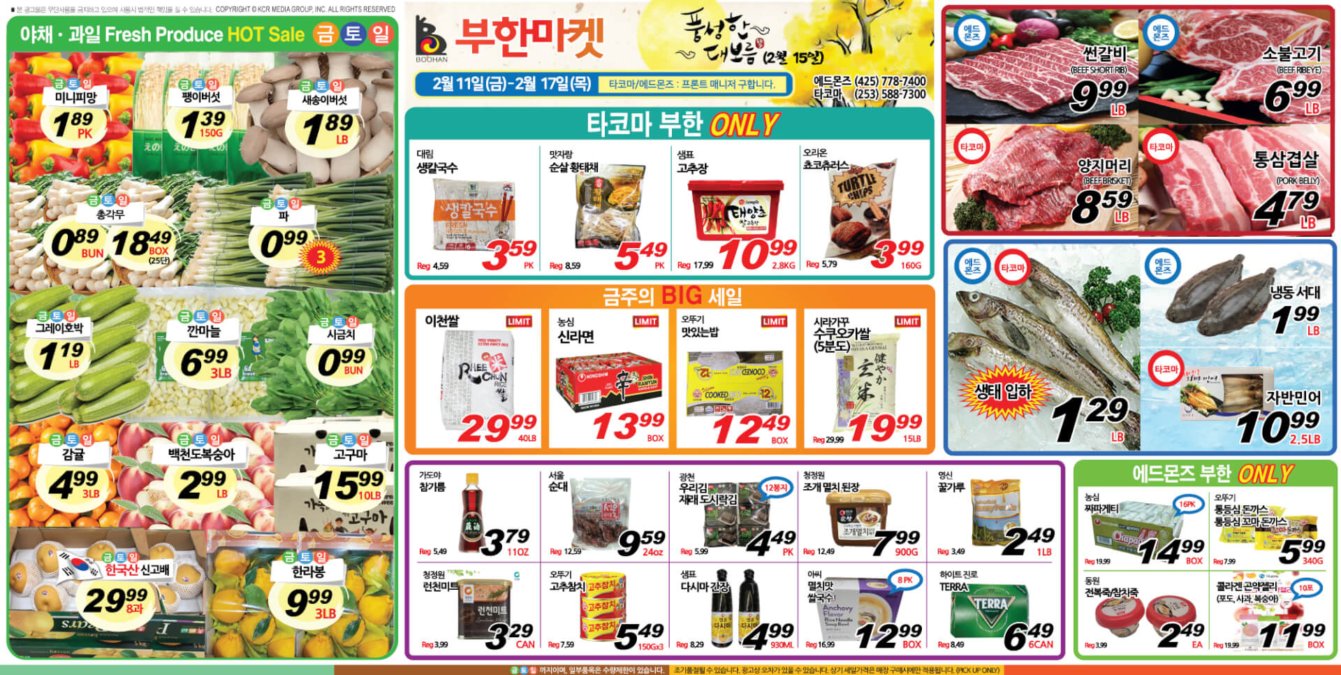시애틀 한인마켓 주말세일정보(2월 11일~2월 14일, 2월 17일)