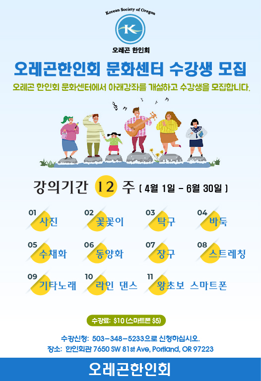 "오레곤 한인회 문화센터 제2기 강좌 시작한다!"