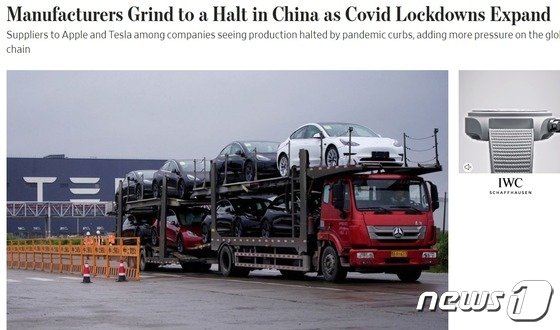 WSJ "상하이 봉쇄 장기화, 美제조업에도 영향 미치기 시작"