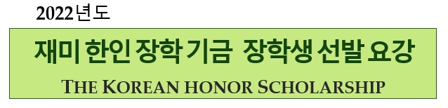한국 정부가 지원하고 주미대사관이 운영하는 재미한인장학기금(The Korean Honor Scholarship)의 2022년도 장학생을 선발한다.