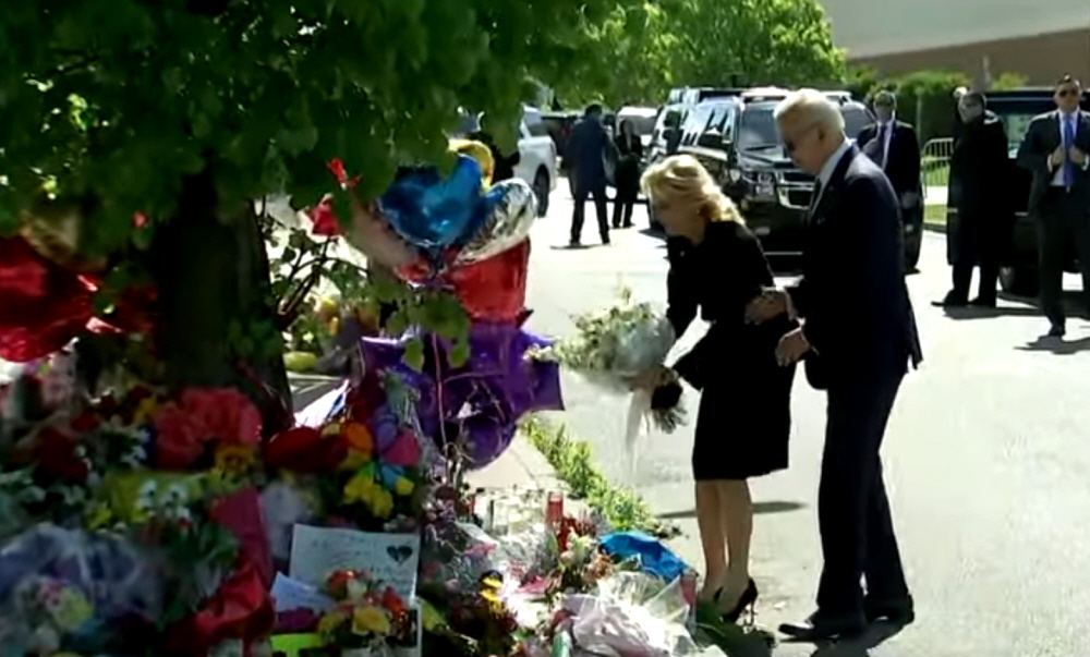 바이든 대통령 부부는 사건현장인 슈퍼마켓 인근에 조문을 위해 임시로 설치된 추모 공간을 찾아 헌화한 뒤 커뮤니티 센터를 방문해 희생자 가족들과 비공개로 만남을 갖고 위로했다.