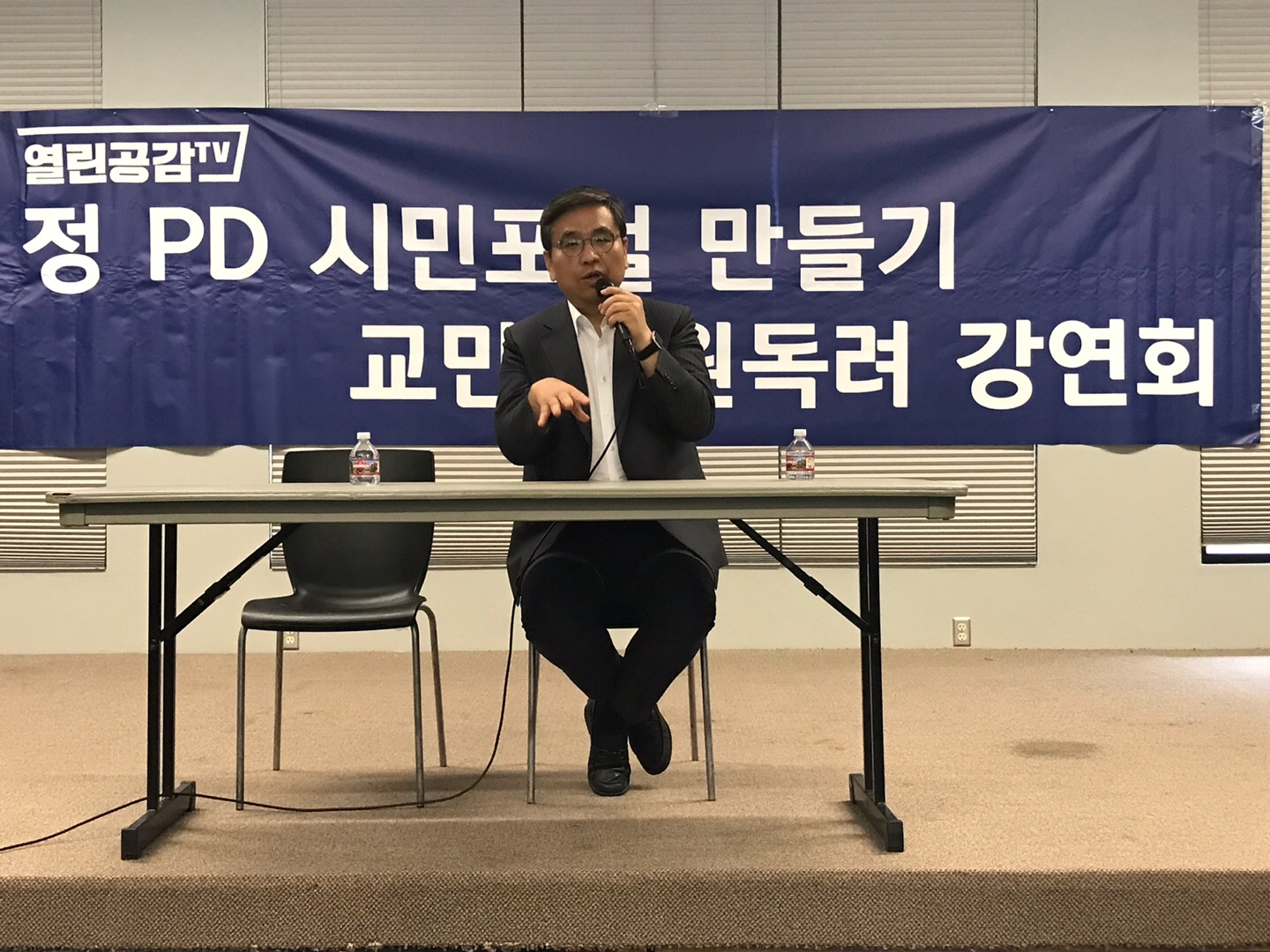 정 대표는 “열린공감TV는 진보와 보수를 떠나 오로지 진실만을 보도하고 시민의 편에서 시민의 알권리를 위해 취재를 한다”고 소개한 뒤 “현재 시민들의 주인이 되는 시민포털 제작을 위해 미국을 방문해 한인들을 만나고 있다”고 말했다.