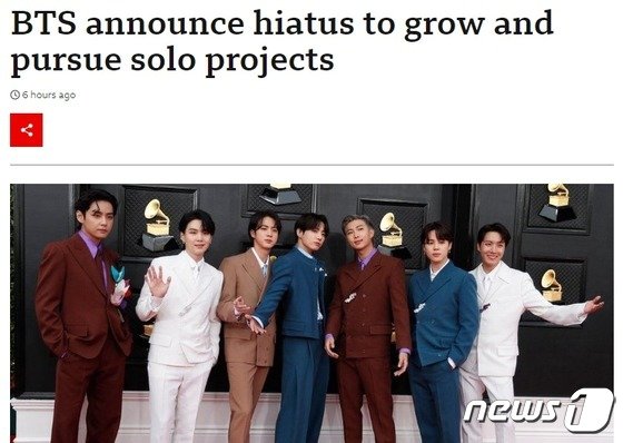 방탄소년단(BTS)이 단체 활동 잠정 중단을 선언했다고 BBC 등 외신들이 일제히 보도했다.