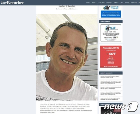 보도에 따르면 미국 뉴욕 지역 매체인 '더 레코더'는 지난 1일(현지시간) 스티븐 자비엘스키(52)가 지난달 15일 우크라이나에서 전투 중 사망했다는 부고 기사를 지면에 게시했다.