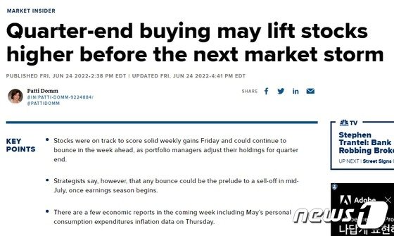 최근 미국 증시의 상승은 분기 말 포트폴리오 조정 때문이며, 새 분기가 시작되는 다음 달에 다시 급락할 수 있다고 경제전문매체 CNBC가 26일(현지시간) 보도했다.