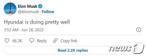 경쟁자를 거의 의식하지 않는 것으로 유명한 일론 머스크 최고경영자(CEO)도 현대의 이름을 언급하며 “꽤나 잘하고 있다”고 말했다.