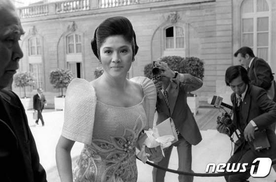 이멜다 마르코스 여사가 1976년 5월26일 파리 엘리제궁을 방문하고 있다. |