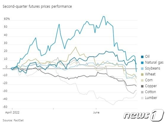 2분기 주요 상품 가격추이 - WSJ 갈무리 |