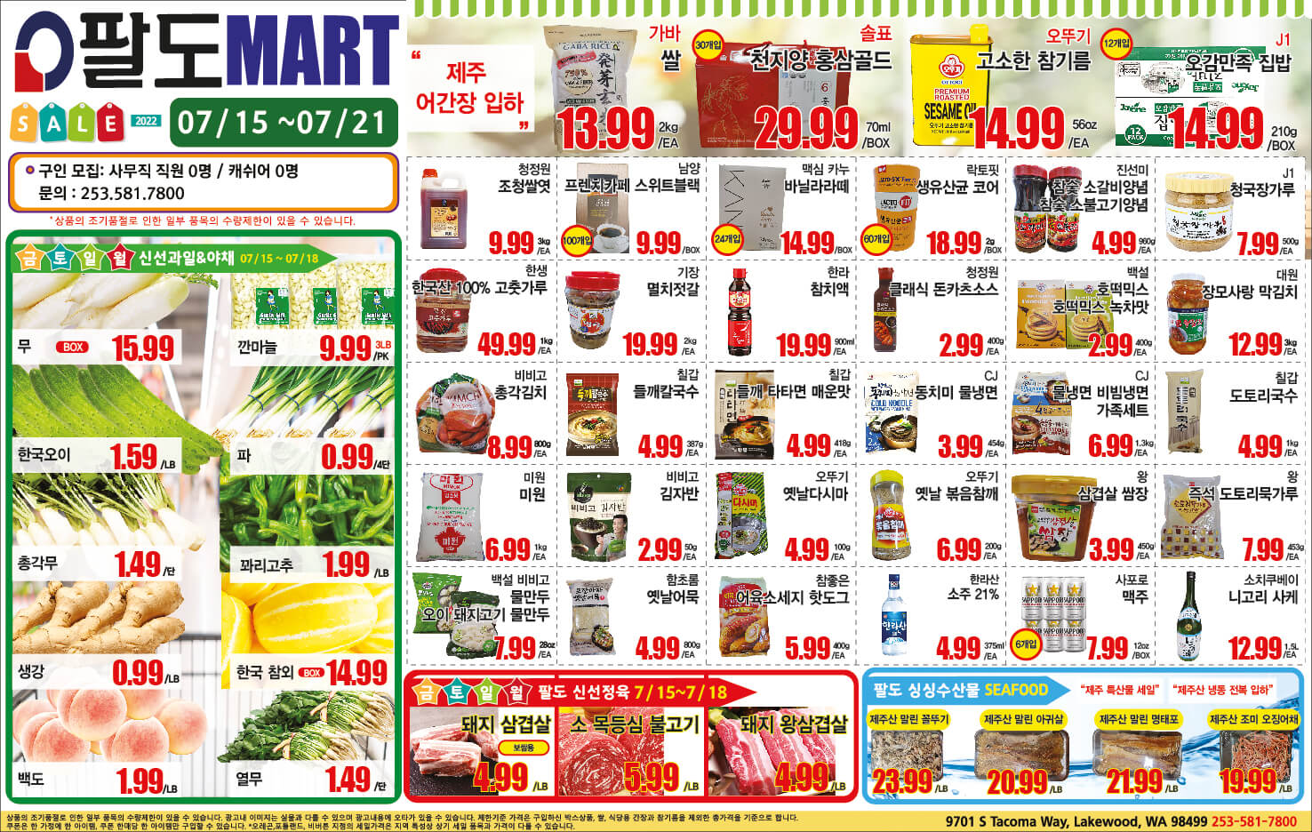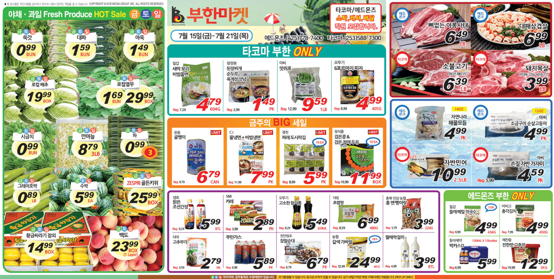 시애틀 한인마켓 주말세일정보(7월 15일~ 7월18일, 7월 21일)