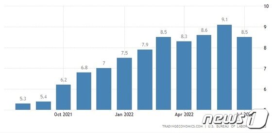 ◇ 7월 CPI 8.5%, 전월(9.1%)보다 하락 : 지난 10일 미국 노동통계국은 7월 CPI가 전년 대비 8.5% 증가했다고 발표했다.