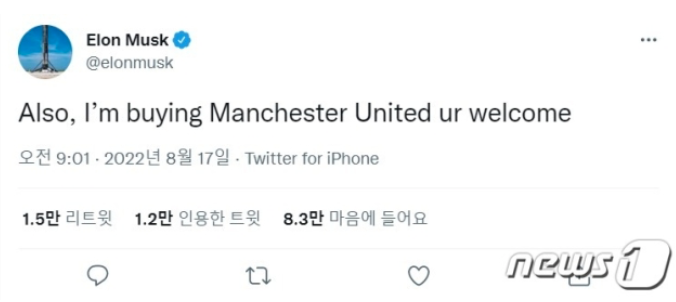머스크, 이번엔 "맨유 인수하겠다"…누리꾼 "아스널 사라"
