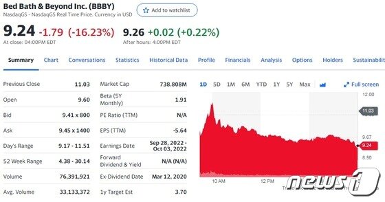 BB&B 일일 주가 추이 - 야후 파이낸스 갈무리 |