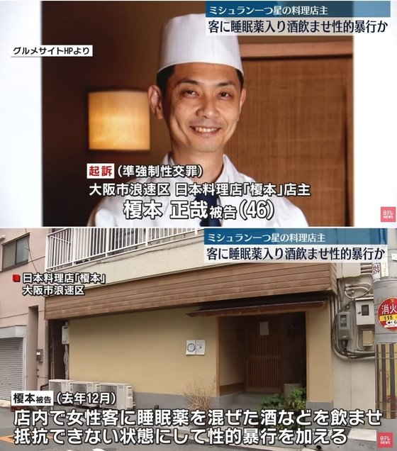 니혼테레비는 7일 오사카현 오사카시 나니와구에 있는 일식당 '에노모토'의 오너셰프 에노모토 마사야(46)가 준강간 혐의를 받고 구속 기소됐다고 보도했다.