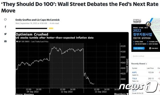미국의 8월 소비자물가지수(CPI)가 시장의 예상을 상회하자 연준이 9월 공개시장위원회(FOMC) 회의에서 1%포인트의 금리인상을 해야 한다는 주장이 급부상하고 있다고 블룸버그통신이 13일(현지시간) 보도했다.