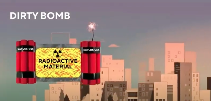 미국 원자력규제위원회(NRC)에 따르면 더티밤이란 재래식 폭발물에 방사능 물질을 결합한 '방사능분산장치'(RDD)다.