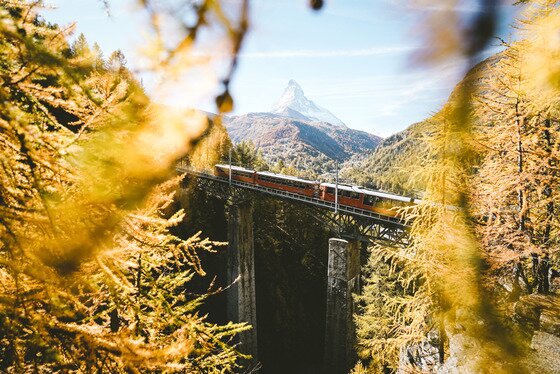스위스 알프스의 단풍 막바지를 낭만적으로 즐기고 싶다면 산악 열차를 타고 떠나보자.