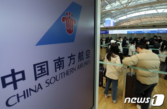 14일 인천국제공항 1터미널 중국남방항공 체크인 카운터에 중국 선양으로 향하는 고객들이 차례로 출국 수속을 진행하고 있다. /뉴스1 © News1 박정호 기자 |