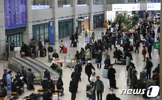 인천국제공항 1터미널 입국장에 해외 여행객들로 북적이고 있다. 2023.2.10/뉴스1 © News1 권현진 기자 |