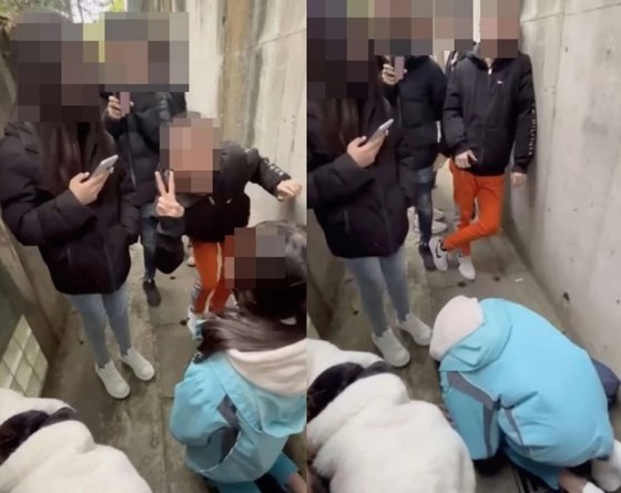 피해 학생은 눈물을 흘리며 엎드려 사과했고 경찰이 도착하자 가해 학생들은 달아난 것으로 전해졌다.