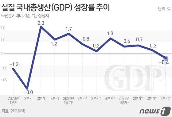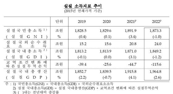 연간 실질 GNI가 전년비 줄어든 것은 코로나19 위기가 발발한 2020년 이후 2년 만이다.