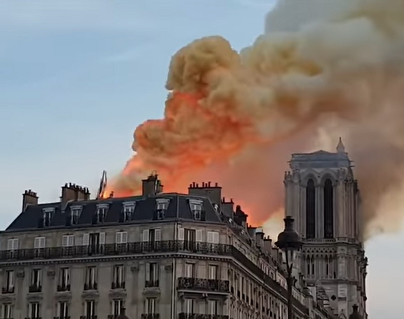 프랑스 파리를 대표하는 12세기 고딕 건축물 노트르담 대성당은 지난 2019년 4월15일 보수 공사 중 첨탑 주변에서 화재가 발생해 첨탑과 주변 지붕이 소실됐다.