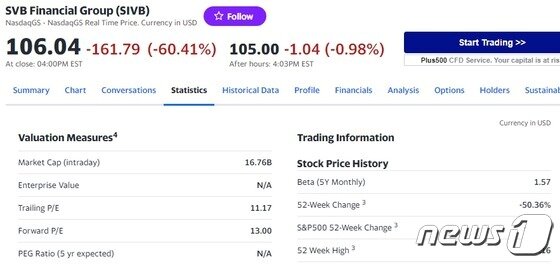 전일 실리콘밸리의 지방은행 ‘SVB 파이낸셜’은 현금을 마련하기 위해 모두 22억5000만 달러(약 2조9700억원)의 주식 매각을 진행하고 있다고 밝혔다. 이같은 소식이 전해지자 이 회사의 주가가 60% 이상 폭락했다.
