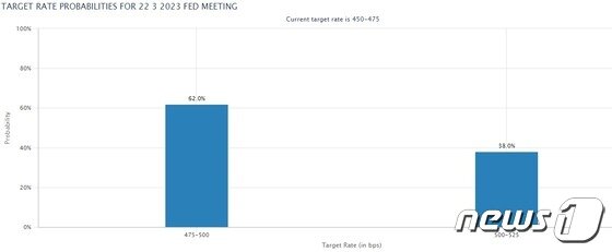 앞서 제롬 파월 연준 의장이 의회 청문회에서 “일부지만 인플레이션이 역전되고 있다”며 “연준은 더 많은 금리인상을 할 준비가 돼 있다”고 발언하자 연방기금금리 선물은 3월 FOMC에서 연준이 0.5%포인트의 금리인상을 할 확률을 한때 80%까지 반영했었다.