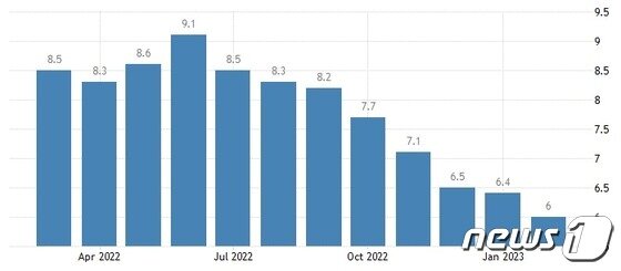 이날 미국 노동통계국은 2월 CPI가 전년 동월 대비 6.0% 올랐다고 발표했다. 이는 시장의 예상에 부합했고, 전월(6.4%)보다 낮아진 것이다. 이는 또 2021년 9월 이후 가장 낮은 수준이다.