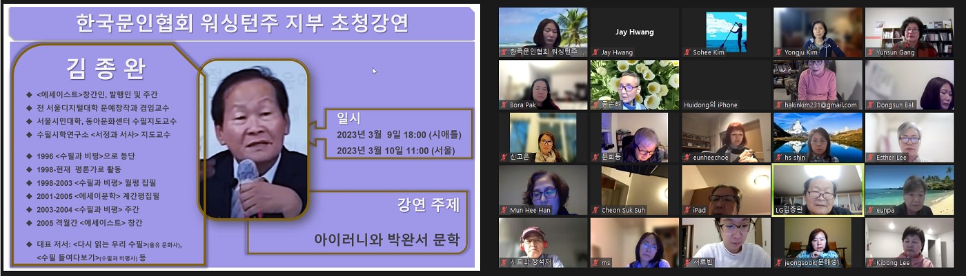 한국문인협회 워싱턴주지부 온라인 문학특강 좋았다