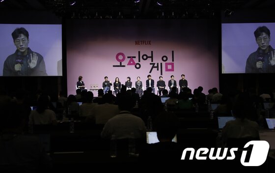 | 지난해 9월16일 서울 중구 웨스틴 조선 서울에서 ‘오징어 게임’ 에미상 수상 기념 간담회가 열리고 있다. ‘오징어 게임’은 지난 5일 열린 제74회 프라임타임 크리에이티브 아츠 에미상(Primetime Creative Arts Emmy Awards) 시상식에서 게스트상(이유미), 프로덕션디자인상, 스턴트퍼포먼스상, 시각효과상 등 4개 부문상을 수상했다. 이어 지난 13일 개최된 제74회 프라임타임 에미상(74th Primetime Emmy Awards, 이하 에미상) 시상식에서는 드라마 시리즈 부문 감독상(황동혁)과 남우주연상(이정재)을 받아 총 6관왕의 쾌거를 이뤘다. 한국 배우와 감독 최초의 수상이자 70년이 넘는 역사를 자랑하는 에미상 역사에서 최초의 비영어권 수상이다. 2022.9.16/뉴스1 © News1 권현진 기자 |
