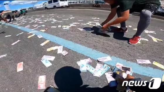 5일 필리핀 최대 민영 방송사 ABS-CBN에 따르면 필리핀 세부 만다웨시(市)의 한 해안 고속도로에서 한 남성의 돈 가방이 터지며 400만 페소(약 9370만원)의 지폐가 도로 위에 흩날렸다.